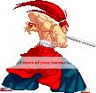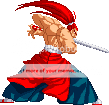 Yeah, since none of you are the creator of this character I guess it would be nice to provide some .act files, huh?http://www.drex.trinitymugen.net/Mugen%20Contrib/SvCGenJyuroAct.zipNow would someone like to tell me why FFU suddenly refuses to make the background of .gifs transparent? Anybody?