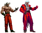 I was going to ask if it would be possible to have a version of this move that just ends in hits, a la KOF 98, but it's your call, I guess. Still, Rugal's sprites don't look all that great with transparency - use an effect around him with alpha trans instead.Also, ONE-UPSMANSHIP TIME:Pretty much just shading fixes regarding Rugal's manly chest. Also, I edited his face in the end of the pose to look more like his original KOF '95 look. And also:I know both GIFs are too fast, I'll remedy that soon.