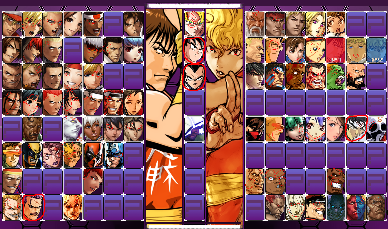 You'll notice that I didn't circle too much on images with much more bolder colors, or your SF3 selections and most notably Guy. With those images, you'll see that the softer hues of colors makes for deft contrast, therefore not a lot of highlight pixels that stick out like a sore thumb (Highlight pixels being ones that look too bright or dark in comparison to their surrounding colors). Note that with some portraits that feature sharper colors and art style feature much more distortion, or what I like to call "speckles."