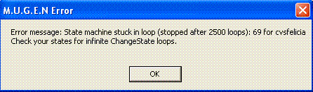 She's causing my Mugen not to load. I'm positive it's due to her, because when I delete her from my Characters folder in WinMugen, the program works fine.