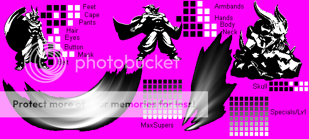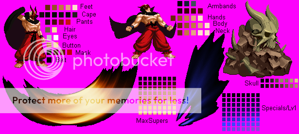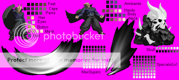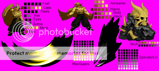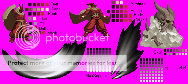 That first sprite looks like a good concept. However, like I've said before a few times, focus less on color variety and more on establishing details and dynamic shading. For example, I'd get rid of the blue for the sword and use multiple shades of gray to make it look like a katana (I dunno, I didn't watch Hellsing so I dunno if those are katanas).