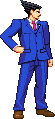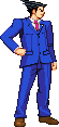 Man, if you never played Phoenix Wright games, then you are really missing out, because the games are so good, and something I would really recommend to try out. But if you are unable to do it (or simply just not interested), I could always provide my point of view as a PW fan to your project. After all, I've played nearly every game so far, with only Dual Destinies and vs Professor Layton left~Back to the sprite though, I feel his hands are a tad too small. Phoenix is known for having quite a big hand (if not just a big finger), so I recommend that you make them bigger. Same goes to the shoes, they look pretty small in there, and even though you don't see his legs often in PW games, I do remember they are a little big. One thing I did like about Steamboy's sprite (and kind of Shin Otaru's sprite as well) is that, height aside, the sprite managed to capture a pretty good PW feeling to it while still maintaining the CPS2 appearance. I say that due to the folds and wrinkles in some parts of his clothes, something that you will see quite often in official PW art:Right now, I feel the clothes in your sprite look a little bit too clean, so if you could apply said details to it, I feel it would make Phoenix a lot more like himself, in terms of appearance.
