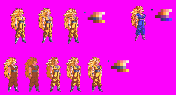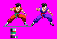Hmmmm... I don't like auto merger, it doesn't allow me to bump my topic. :-/I worked on this edit recently, the sprites are colour separated, hence the weird colours on the eyes, belt, wrist bands...Here we are:base:Ultimate Gohan (animation):Edit of Ultimate to Normal Gohan (Colour separation + palette sample):