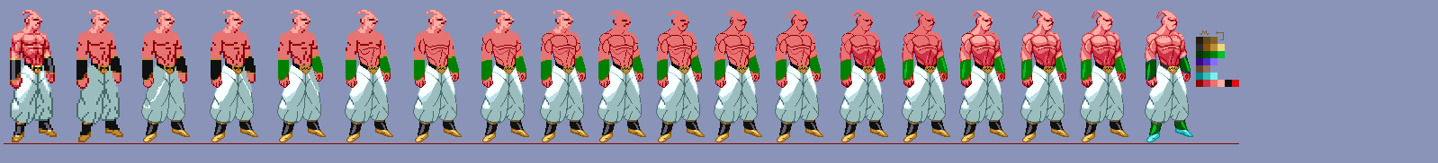 GokuSSW2 sprite scaled by 120% x 120%, then edited by me. Credits go to Bandai for making the sprites, ShadeDBZ for ripping them.Super BuuSSW2 sprite scaled by 200 x 200 %, I wanted to do an Hi Res sprite of Super Buu. As always credits to Bandai and ShadeDBZ for the first sprite.I used the same shading as the one in the game.