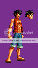 I tried making Luffy's head. One is more animeish but does not fit KOF style, while the other is more KOFish but, looks less like Luffy.