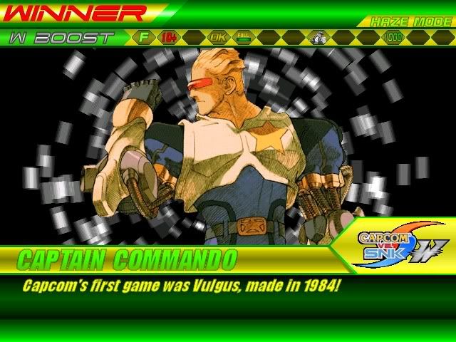 the game is called cvs W ... from waru's creations only omg ... [/quote]well if its for waru's creation only why does it have some of van's cvs styled chars?its a pretty good idea to put in some H' s char that way the game can include atleast a eagle,etc then the name would be capcom vs snk W.V.Hdime si no es una buena idea rednavi