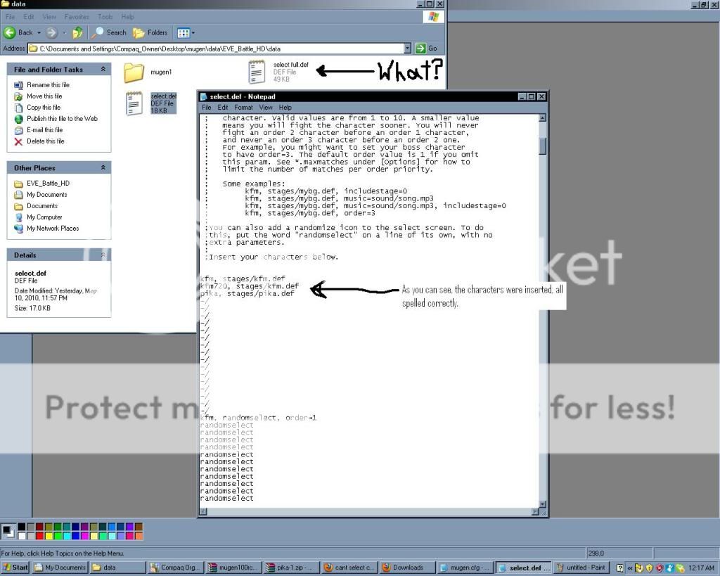 The original MUGEN'S select.def file now has nothing in it, but even when the characters were in the original file, no characters were yet shown.