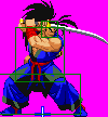 - Why did you overcomplicate the Hitboxes on his stand and his tornado projectile? All you need is 2-3 hitboxes as your standing and one box for the tornado.- The second super he has doesn't seem to work with the current command.- Standing Z doesn't have enough pushback.- Ok, I've been trying his combos and a few probelsm. The AI can seem to do them properly but it seems if I do it the timing seems to be always off. Please specify which one are we supposed to do. Is it the light or the heavy version? Also, the 5 hit crouching combo doesn't work, only hitting up to the third input. - Ougi Kogetsu Zan is repeated in the readme.- x, y, z, z, Ougi Resshin Zan does ridiculous amounts of damage. Defintely no damage dampener.- Why these weird values again? life = 1050 ;Amount of life to start withpower = 3800 ;Amount of maximum powerattack = 61 ;attack power (more is stronger)defence = 110 ;defensive power (more is stronger)It makes a level one take out about about 1/3 HP on everyone else. What's wrong with 100 atk, 100, def, 1000 HP? - Oh, you still can't program AI side from blockwhore AI. Heck, I had more fun fighting the easy AI than the Medium AI since it was actually doing something than sitting down and being a wuss.- Why can he throw me when I'm in the middle of an attack or...I dunno...When I'm crouching!?Debug flood on Haohmaru: