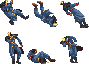 -The hands could use some modifying; it looks very detailed compared to the clothes, making it look awkward. (Talking about the top right sprite). In other words, too KOF-ish.-His hair looks too KOF-ish in some of the sprites like the bottom left one. Actually, his whole head looks KOF-ish.All I have for you right now. I'm 100% sure this would have an epic result in the end! Well, that is if it's completed. EDIT: Modified my post to add some more details on my first feedback, cause I felt like it didn't make sense.