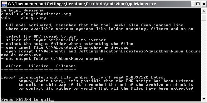 ok, im trying to figure out what im doing wrong here, i have quickbms and im using the script that Freezeman put on page 3, im trying to unpack the .pac files of the leaked BBCS, but everytime that i run it i got this
