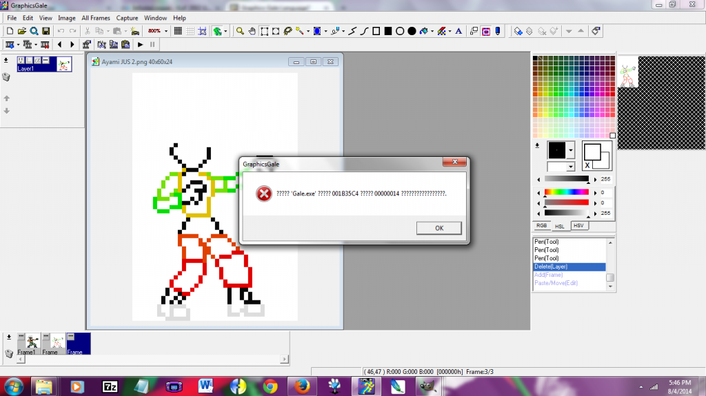 Hi.I have a problem. When I skipped back on graphics gale on an image that has a frame, this happens:Spoiler, click to toggle visibiltyThis window pops up a won't go away. Is there anyway to solve this without completely starting over your computer and if possible, keep the work that you were doing?