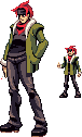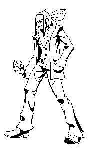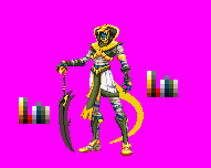 Holy crap, Kiwi. THANK YOU for introducing me to the indexed color method. After about an hour of doodling a possible stance, a quick throwing down of some shading, a few hours of trial and error with photoshop filters and indexed mode tomfoolery, THIS happened: