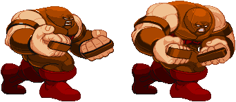 Nice job. I like this Juggernaut a lot, even with its current coding faults....on to the visual ones, shall we?The new Sprite stance is awesome and really fits his huge perspective well. A few things:Looking closely at the old stance, you can see that you are missing some colors from the palette set in the new stance. These are the Darkest color (gauntlets and pads bottom edge) and the lightest color which provides shine to the armour. Without these two colors the new sprite looks kind of plain. I suggest you add these to the new sprite since they are already in your palette and will give more detail to the sprite.Secondly, is it just me or does anyone else notice misaligned sprites in the stance anim? Its barely noticeable but even if you look to the gif on your thread opening message you will see at least three frames are one pixel off to the right. This of course can be easily corrected.Thirdly...why not use Hires MVC2 effects better?Hence all the mentioned, this Juggernaut is very refreshing and cool. I look forward to updates.