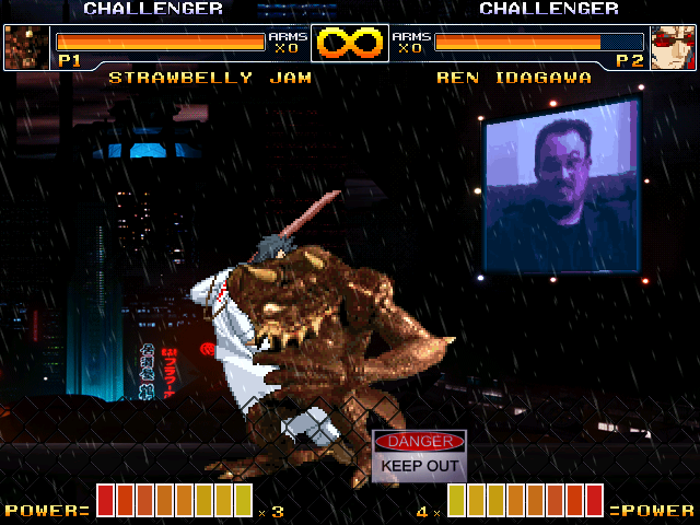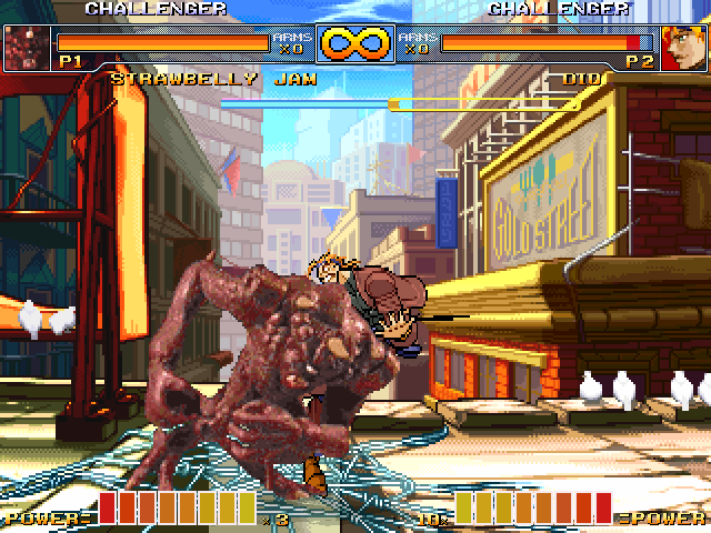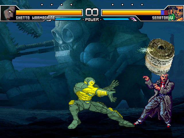 I tested Deke. - Put the musics/voices during intros on a particular channel, and put a stopsnd in state -2. Because it looks odd to have the voices continue when you skip the intros.- Typo in readme for qcf motions, which are in fact qcb.- Organ Toss would feel more natural if the organ was describing an arc motion rather than a line, making it affected by gravity.- The crouch CLSN. - Same for taunt.- Turn sprites not added yet, but you know that. I love the Muse intro, it really cracked me up. It's shaping up nicely for now. I really want to see what other crazy ideas you'll come up with.