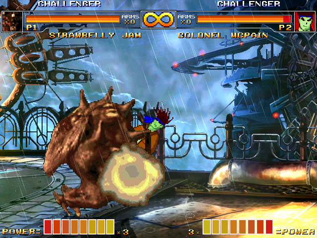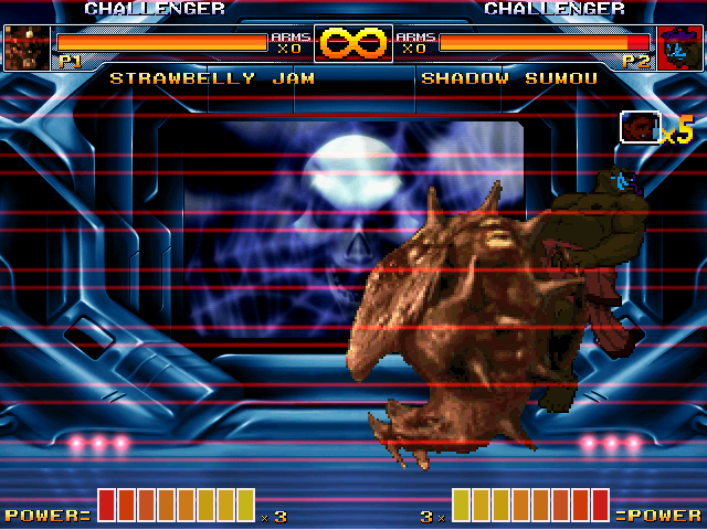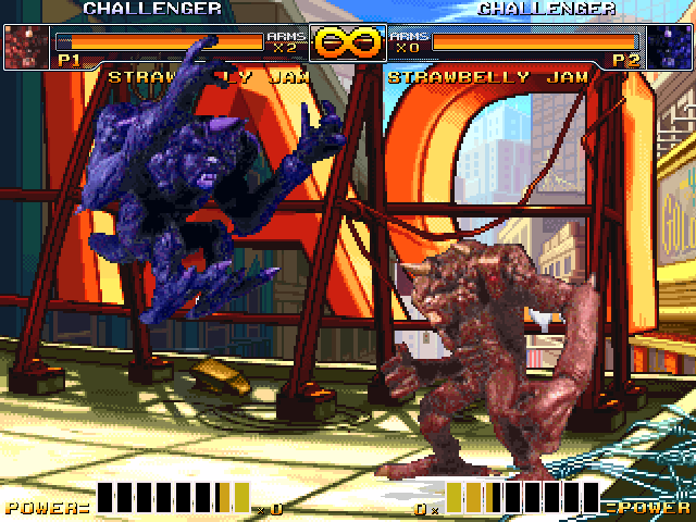 welp, this is late as hell but thanks for the reply cybaster. i've pretty much decided deke's gonna be next after this new project i'm planning. yeah i kicked around the idea of kyo hombre but after alter amiba, i kinda wanted to make a character who has a movelist that existsenter strawbelly jam (or drethdok outside of japan). yeah, another battle monsters character, big surprise. he seems like he'll be pretty simple to make though so i'm gonna set my sights on making him for now.a few notes though: in the game, upon holding A+B, he can regenerate his health. yeah. i think i'm just gonna rip off elena's healing move from third strike for that.this is also not his original palette, this is. thing is, when i rip from yabause, he has black that blends in with the background, pretty much making it unrippable. so i went with his alternate instead, and the other palette there is the 'blueberry jam' palette because lol funnybut yeah. basically this first and then deke because i liked how he was coming out