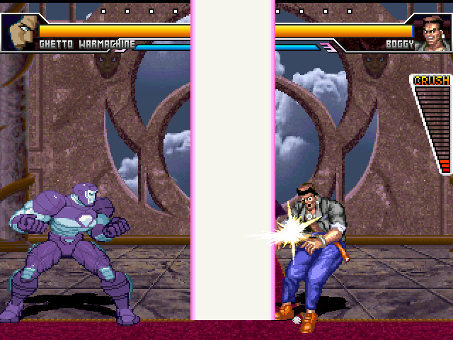 MDI said, December 31, 2011, 08:05:19 amThat isn't a bad idea. Everytime he gets hit you could have chunks of metal come out (with sfx to go along with it). huh, you mean like how everyone in clayfighter 63 1/2 has chunks of stuff flying out? that's not a bad idea at all, yeahi mean yeah i only have very very minor abilities at sprite editing so the more 'advanced' stuff might be out of the question, but the smoke and chunks and hell, even the random falling could work. also yeah i might make him less mobile considering, as some of his specials already have some pretty slow start-up (i.e. the 'repulsive blast', a keep-away move where he slams his fist into the ground and pretty much summons a hitbox around him)thanx for the ideas, this'll help a lot, and mdi yours will be most likely put in the most since you came up with the idea in the first place. oh and i already have a movelist penned out so