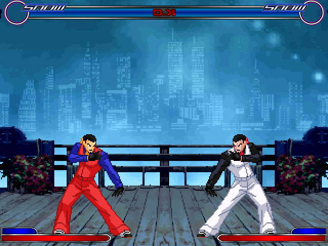 God's Anger said, February 20, 2009, 09:40:09 amRunning Wild said, February 20, 2009, 02:37:05 amPower/Guard bar looks too boxy I think.From the V1 of the game.I don't like diagonal lifebars either. Custom portraits please, with a special shape.Also, why not code the lifebars into the characters, to allow gradient color change for example ?person that helps me with that stuff is too busy nowRunning Wild said, February 20, 2009, 02:37:05 amToo gaudy looking, and I'm not liking the name font either. Power/Guard bar looks too boxy I think.stuff your complaining about is from version 1.0