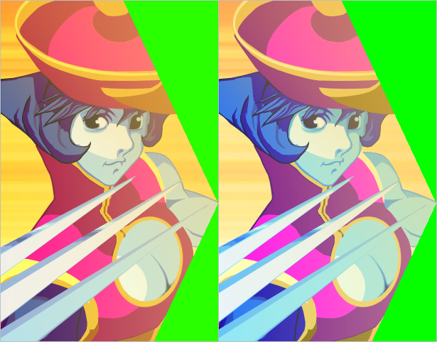 Also, continued drawing LeiLei and had a friend over who is a huge Darkstalkers nut nitpick about how her colors weren't exactly right... --;...So I created a curve filter variation. I personally like both the same and will release them cuz I can, but what do you guys think?